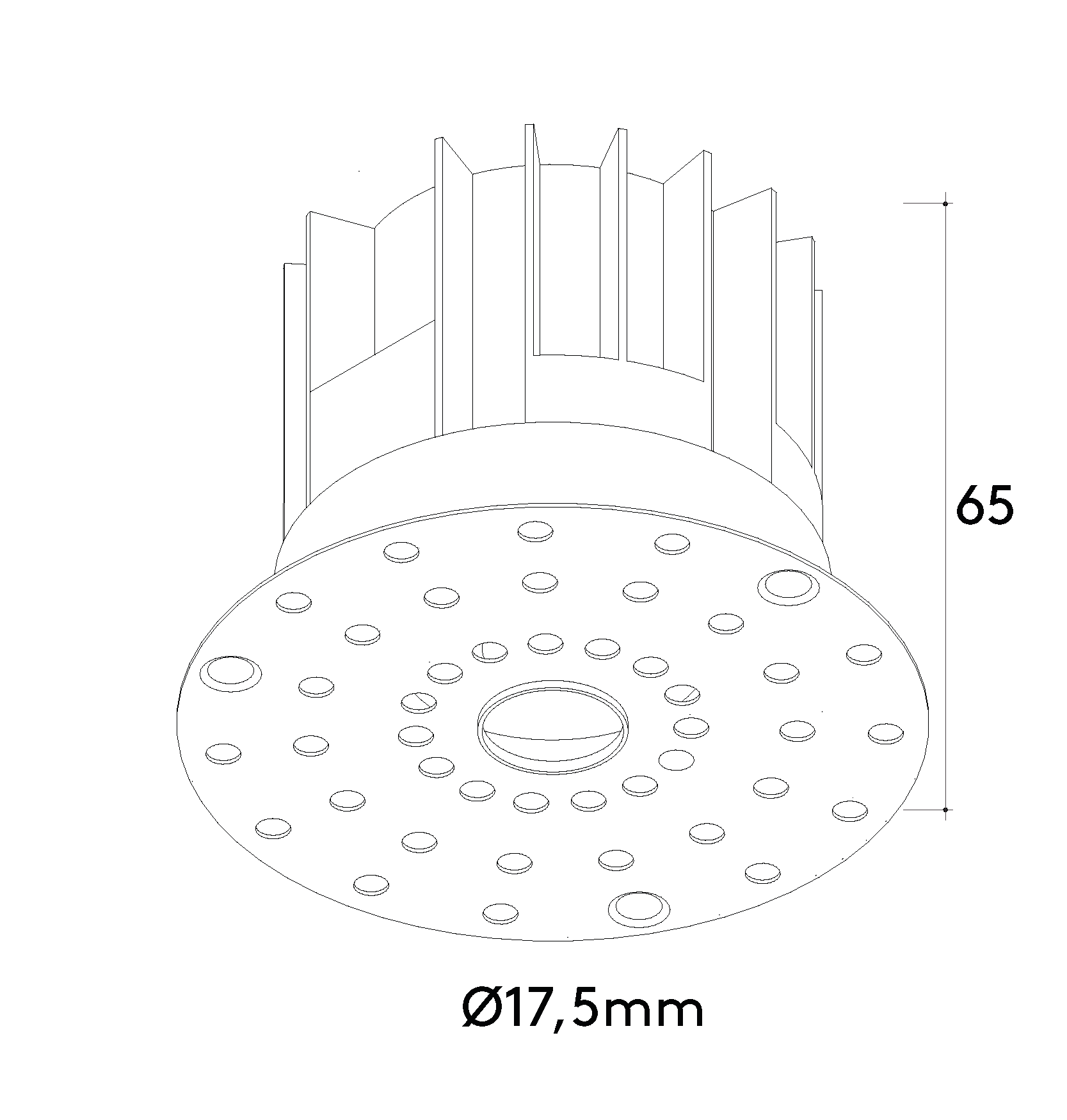 Embutido no frame com apenas 17,5 mm de abertura e alto fluxo luminoso. Utiliza lente especial que projeta a luz através do pequeno orifício sem perdas internas e controle preciso de ofuscamento.