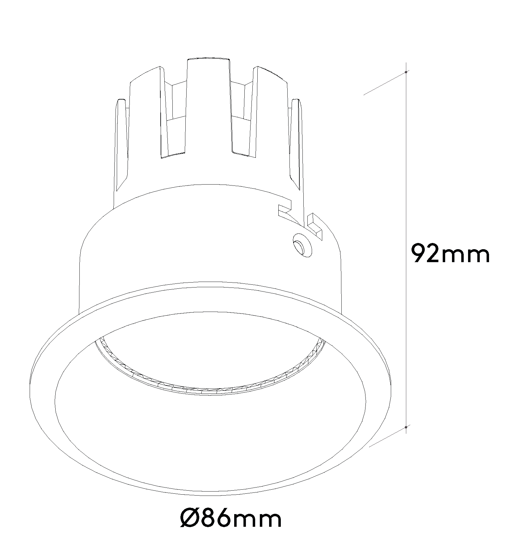 Embutido com tecnologia dark light, que oculta a fonte luminosa e elimina o brilho direto no campo visual. O corpo óptico recuado permite controle preciso do facho e índice de ofuscamento extremamente baixo (UGR <3). A luz é percebida com nitidez, sem exposição da fonte, criando uma iluminação eficaz e discreta.