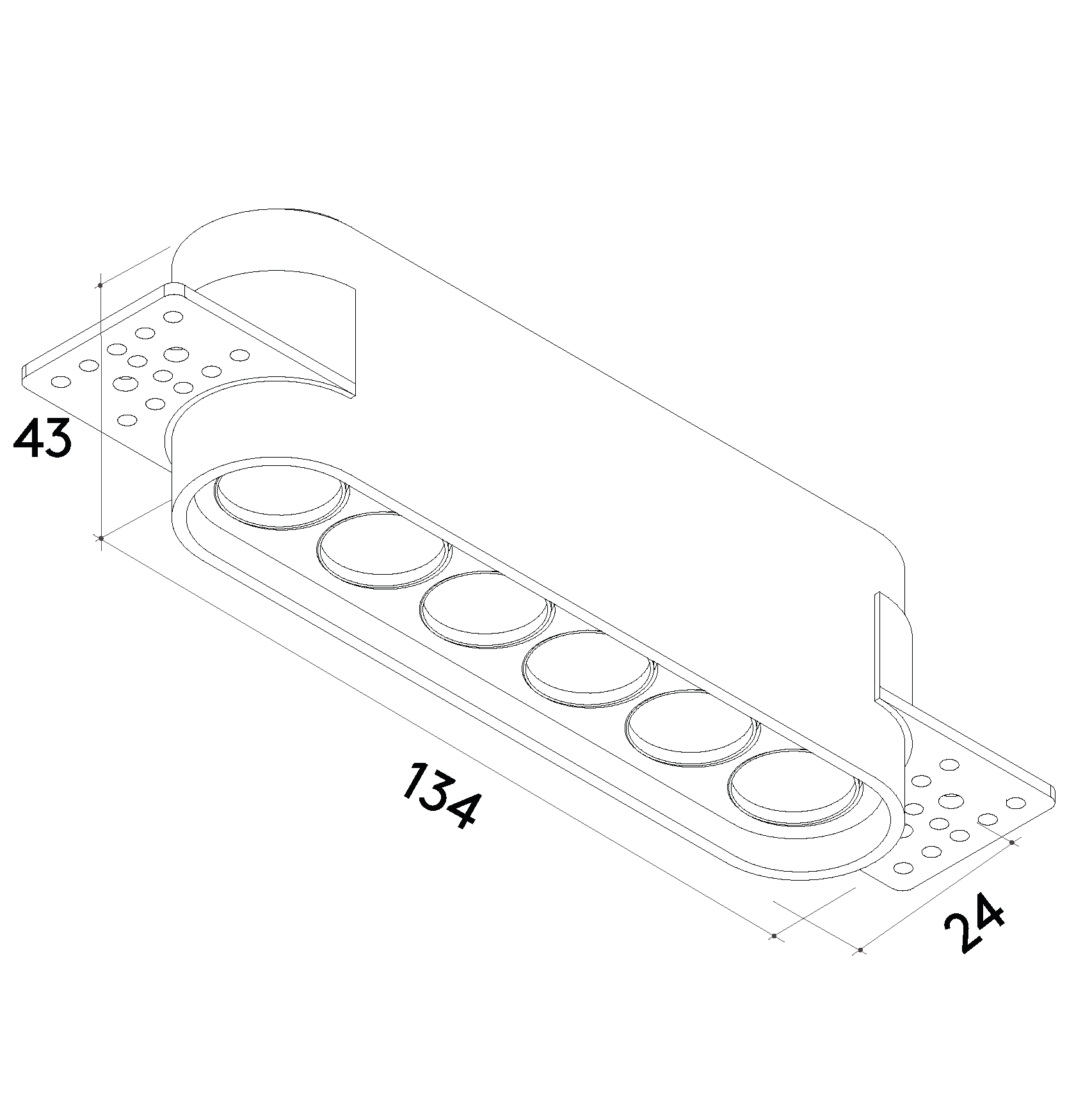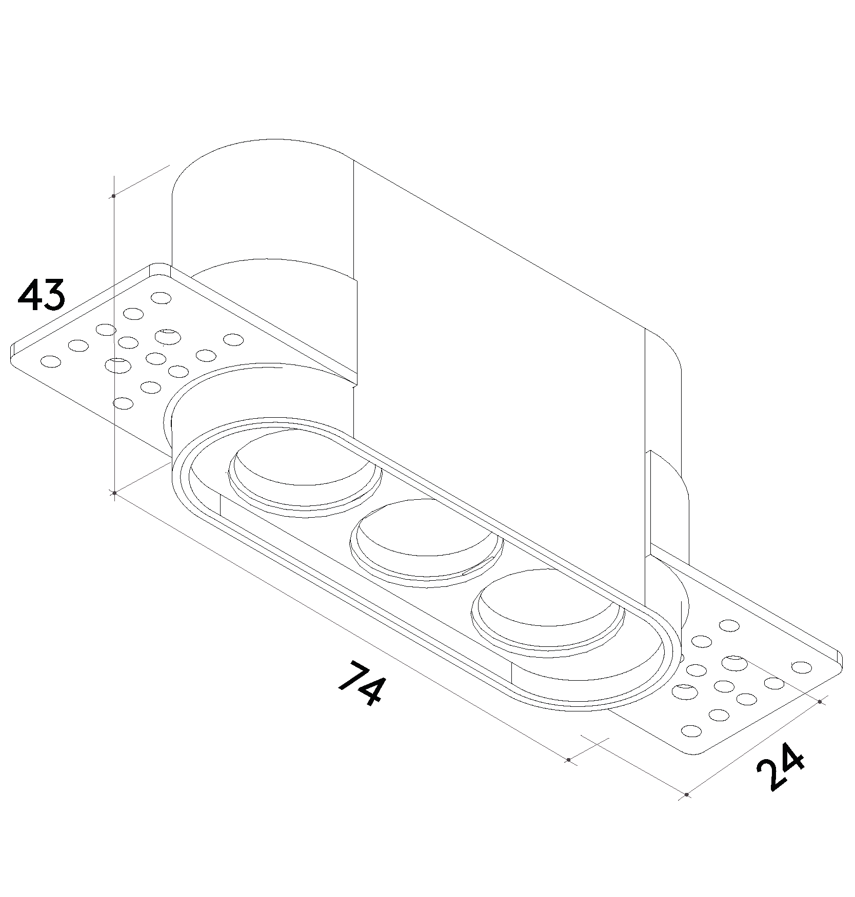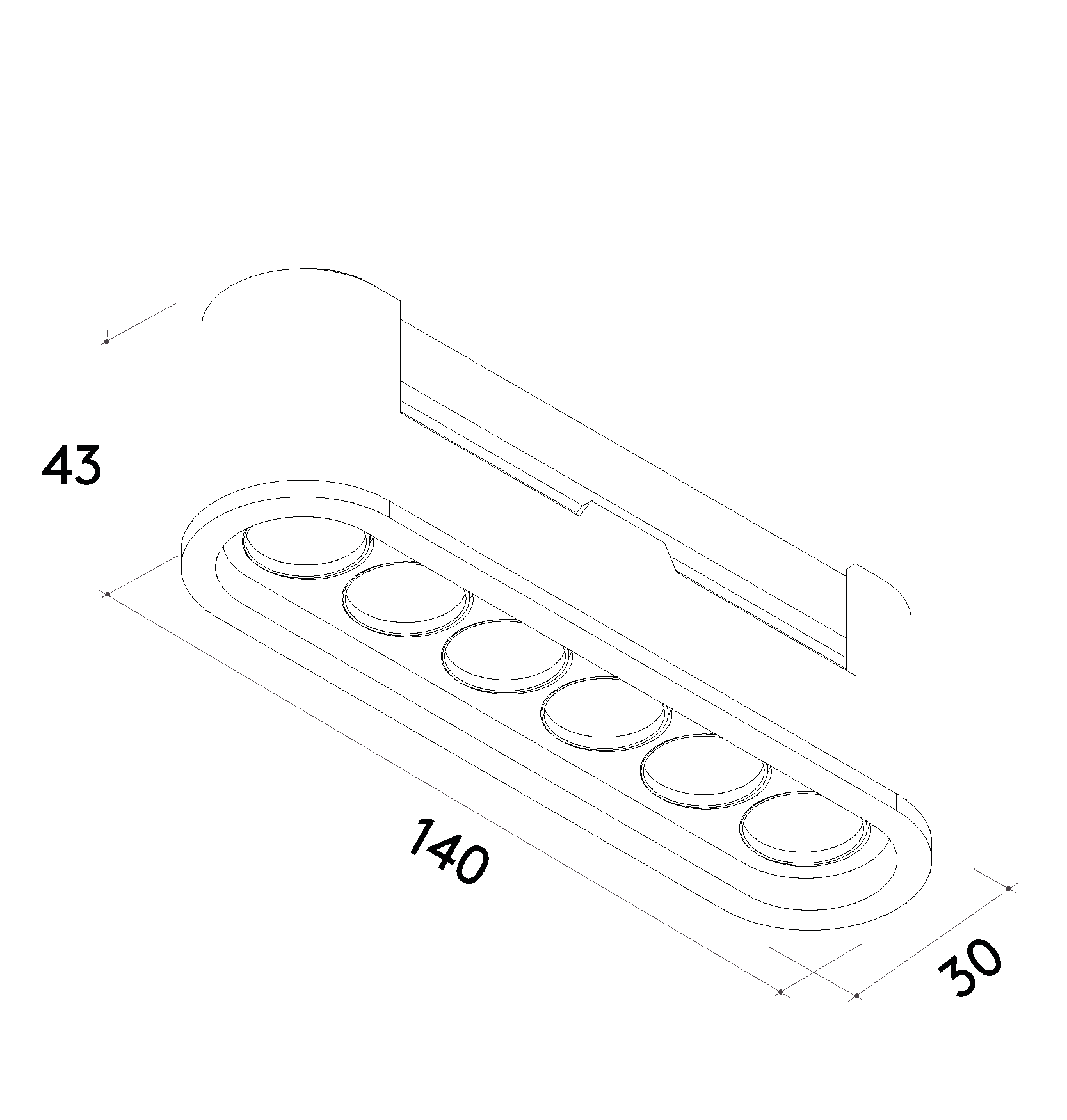 Nova abordagem para luminária multifocos, com bordas curvas e acabamento em cores arquitetônicas. Design minimalista, com alto controle de ofuscamento e LED de elevada